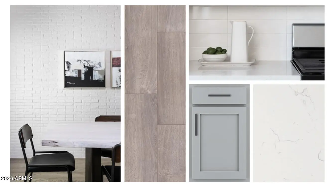 Welcome to the Larkspur Plan,in this thoughtfully designed 1,953 sq. ft. new build featuring 3 bedrooms, 2.5 bathrooms, and a versatile den--perfect for a home office or private retreat. The kitchen is the heart of the home, showcasing our designer-selected Minimalist Collection with 42'' gray cabinetry, a stylish tile backsplash, and a large quartz island ideal for entertaining or casual meals. Stainless steel appliances, including the refrigerator, add both elegance and functionality. The open-concept layout connects seamlessly to the dining and living areas, creating an inviting space for everyday living. Elegant wood-look tile extends through the main areas, 2'' blinds, and 9-foot ceilings for an airy feel. A 4-panel sliding glass door opens to a covered patio, perfect for relaxing or