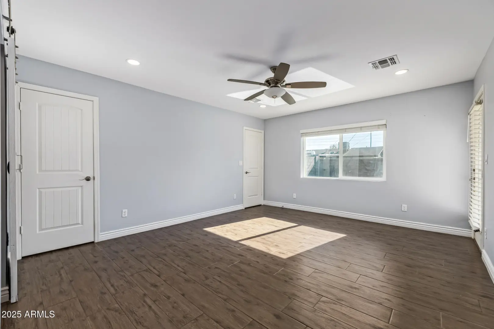 Completely remodeled with quality finishes throughout, this beautifully updated 3-bed, 2-bath home with a 1-car garage sits on a desirable north/south lot with a sunny south-facing backyard. The open great room flows to a stunning kitchen with a tile backsplash, an island with a breakfast bar & stainless-steel appliances including a gas range. The split layout offers privacy, with a primary suite featuring an expansive walk-in closet with built-ins, & a modern bathroom with a large shower, separate tub & dual sinks. Two generous guest rooms sit on the opposite side, one with its own walk-in closet. Outside, enjoy a private pool, low-maintenance landscaping & plenty of room to relax or entertain— all in a prime central Phoenix location minutes from the Biltmore, top restaurants & shopping!