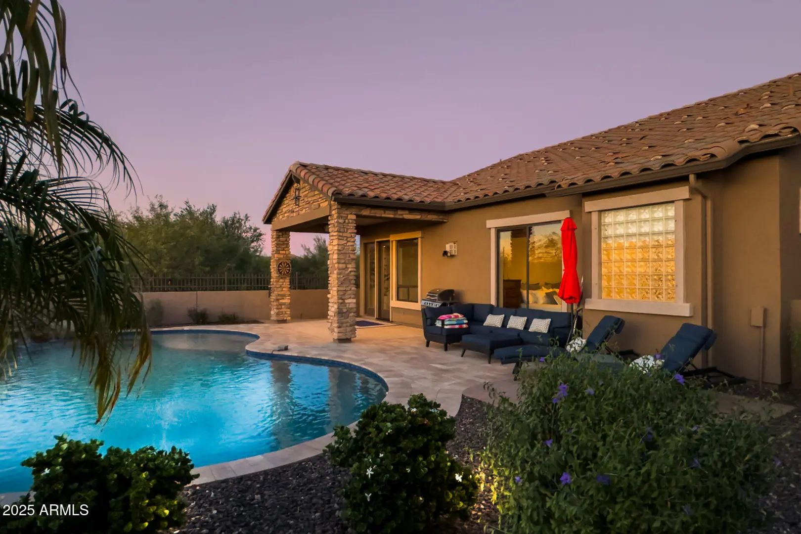 Experience luxury desert living nestled in the prestigious Stoneledge gated community of Las Sendas. This rare & well appointed 4 bed, 3 bath home on a private corner lot offers breathtaking mountain & city light views. A paver driveway & walkway, stone surfaces, & freshly painted exterior adorn the charming home with incredible curb appeal. The 1910 sqft, open-concept floor plan lives even larger due to the expansive ceiling heights in much of the home. A stacked stone floor-to-ceiling gas fireplace brings a cozy feel to the cool winter nights. Newly installed carpet can found in all 4 bedrooms. A covered patio, travertine hardscape, & the sound of a running water feature welcomes you outside to the panoramic sunsets. The Las Sendas community embraces the most active outdoor