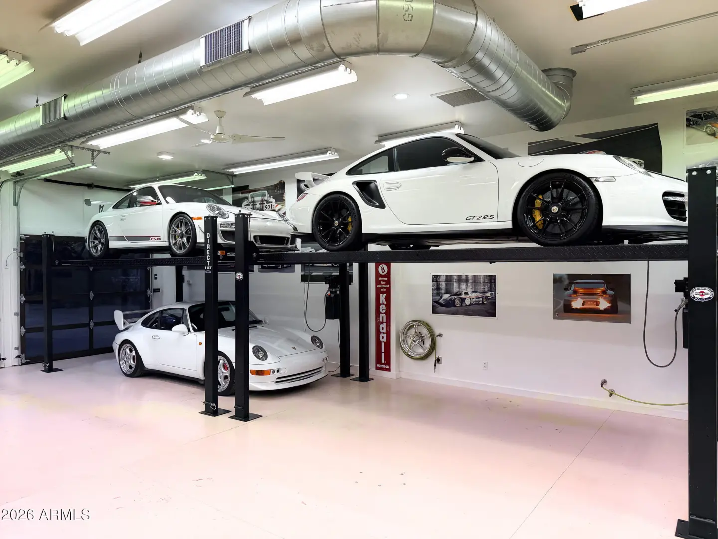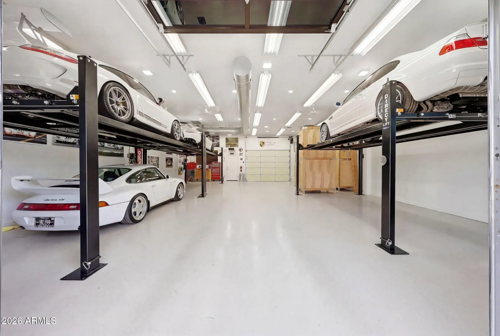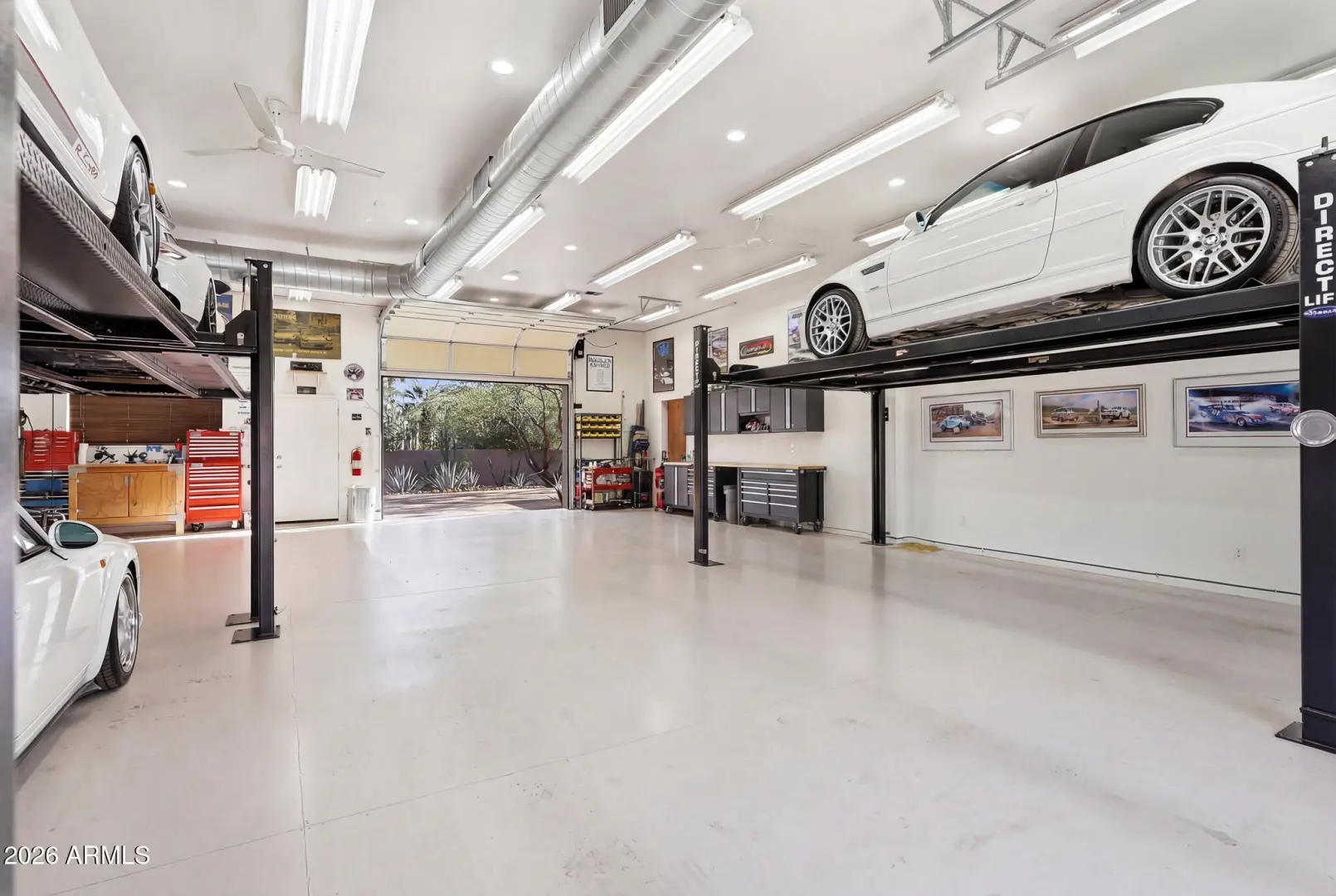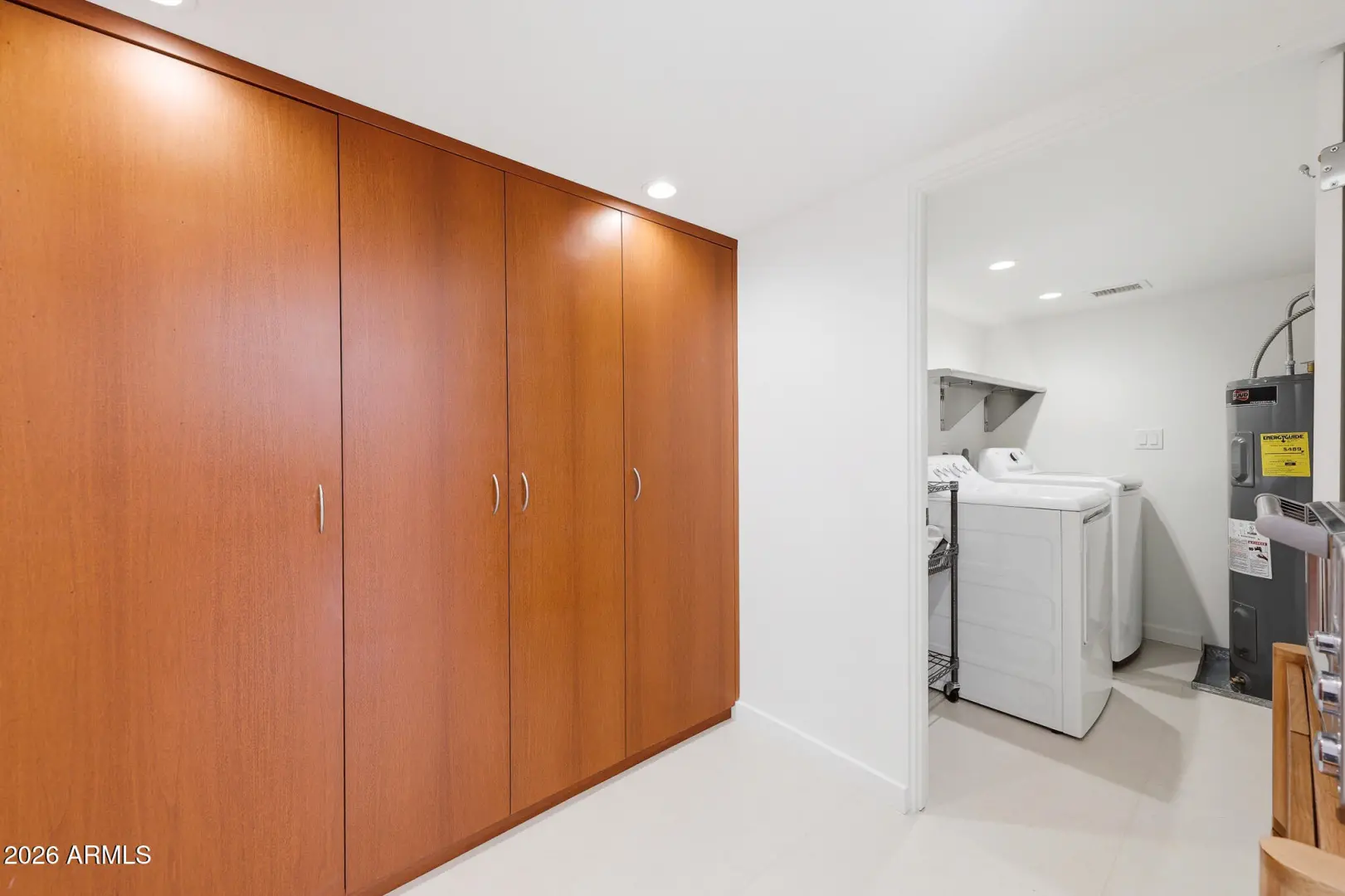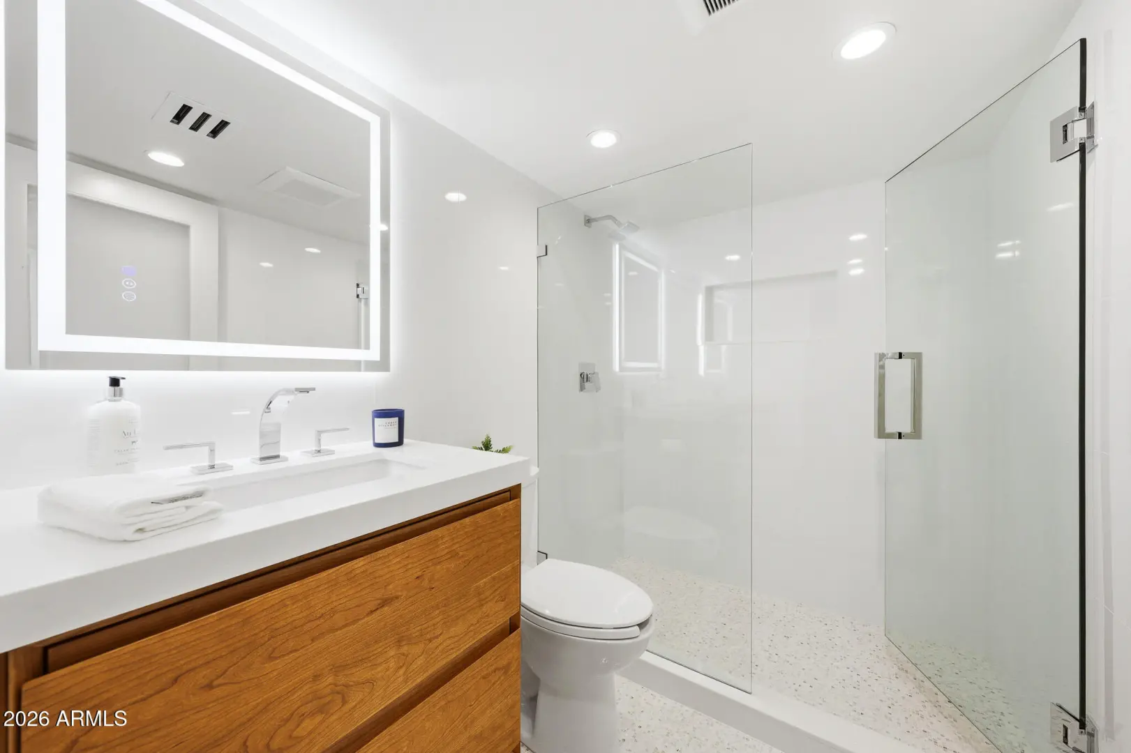 This stunning mid-century modern residence, inspired by the timeless design principles of Frank Lloyd Wright, is ideally located in the heart of Paradise Valley. Offering 3 bedrooms and 3.5 baths, the home combines clean architectural lines with an easy, low-maintenance lifestyle. As you enter, the home opens to a light-filled great room and dining space centered around a cozy wood-burning fireplace. The chef's kitchen features Taj Mahal quartzite countertops, stainless steel appliances including a gas range, and generous storage, all overlooking the main living areas. The flooring throughout includes a blend of large-format 24×48 porcelain tile, Brazilian cherry hardwood, and marble.
