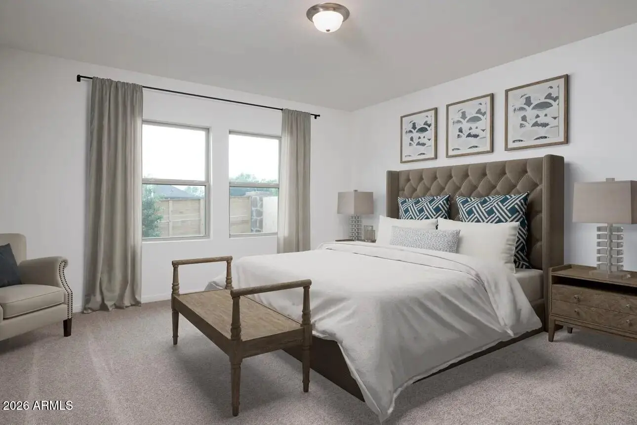 Beautiful NEW Home in PRIME location, close to major cities. Move- in Ready in early May 2026! Featuring countless upgrades such as White Shaker Cabinetry, Granite Countertops, Stainless steel appliance package, and 9' ceilings throughout! Spacious walk - in closet in owners suite. Energy - efficient features including dual pane windows, WIFI programmable thermostats and insulated garage doors. Front yard landscaping package, covered patio and porch. Neighborhood parks, playgrounds, covered picnic tables and greenbelts throughout. Spectacular mountain views! Conveniently located near the 347 and I-10. Highly rated schools, shopping, and dining! Just 5 miles from Fry's, Walmart, and CVS! 10 minute drive from all shopping, dining, and recreation.