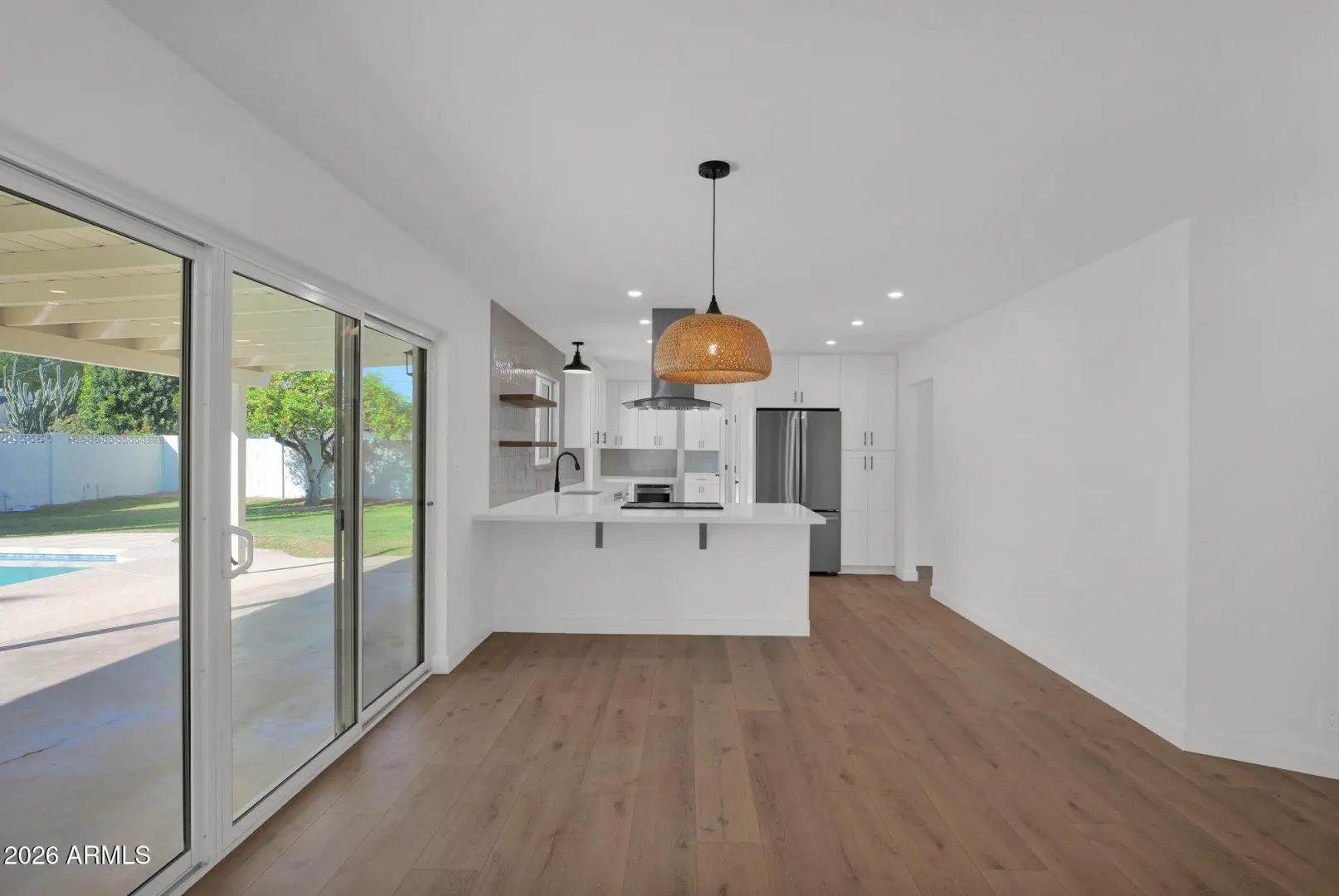 Completely remodeled and move-in ready in the heart of North Central Phoenix! Situated in a highly sought-after neighborhood within walking distance to Sunnyslope High School, this beautifully updated home blends modern finishes with timeless charm. Thoughtfully redesigned with a desirable split floor plan, this 4-bedroom, 2-bath residence offers both living and family rooms--perfect for everyday living and entertaining. Wide-plank honey-toned luxury vinyl plank flooring by Bedrosians flows throughout the main living areas, with tile in the baths and laundry for durability and style. The fully renovated kitchen is a showstopper, featuring a breakfast bar, shaker-style cabinetry, quartz countertops, stainless steel appliances, and a custom tile backsplash. Just off the kitchen, the-