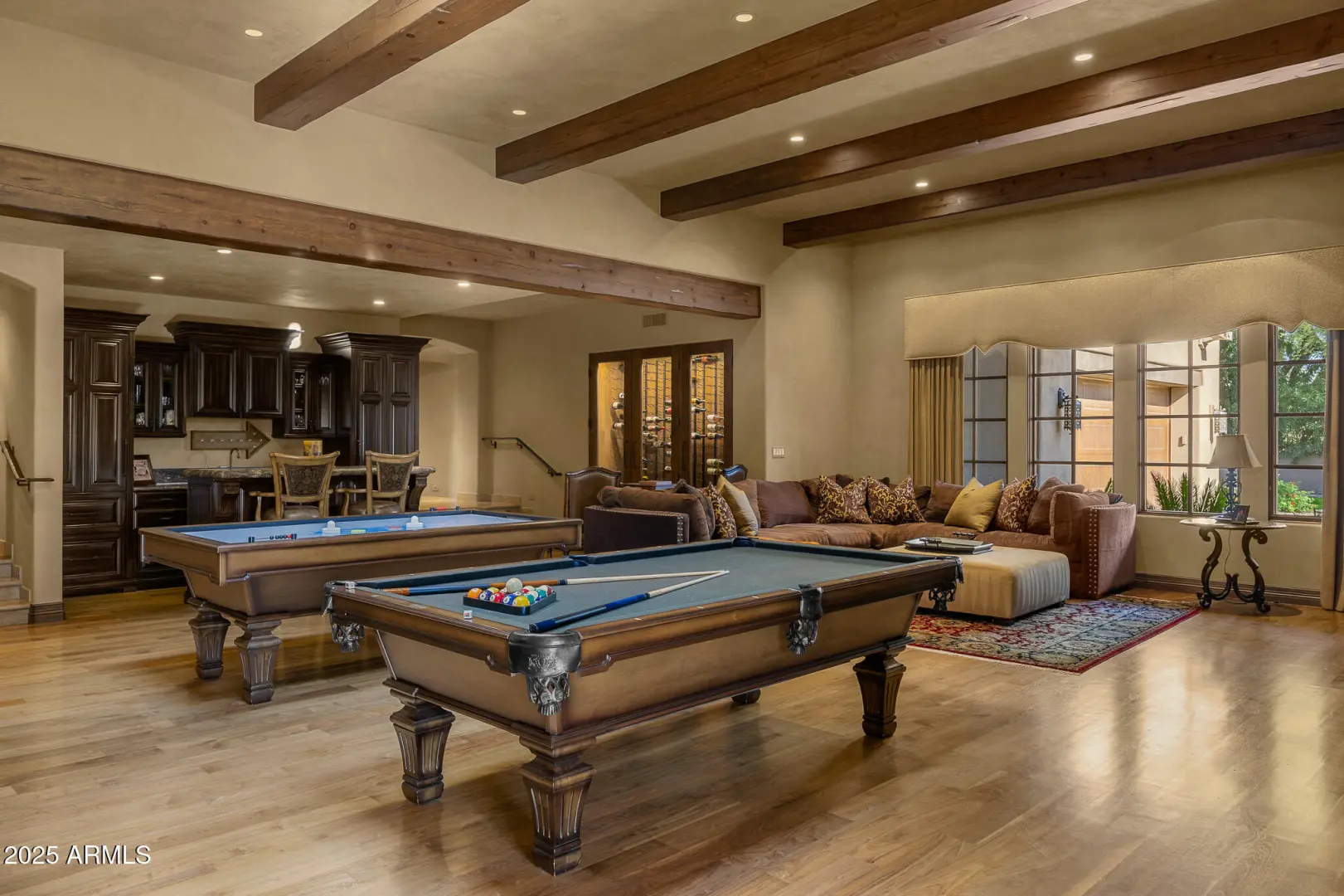 You've just discovered the equestrian estate you've been dreaming of. Tucked privately behind metal gates, this enchanting 2.3-acre property reveals a timeless architectural masterpiece, complete with full equine facilities, resort-style amenities, and unforgettable living spaces. The main residence offers 4 en-suite bedrooms, a spectacular game room with a full wet bar and wine storage, and an extraordinary movie theater that rivals any luxury cinema. An upstairs office with an amazing deck provides a serene vantage point, while the detached guest house with a commercial quality gym and four-stall stable expand the estate's possibilities even further. The luxurious primary suite offers a private sitting room, two warm gas fireplaces, a separate nursery/craft room, and a serene, spa-like