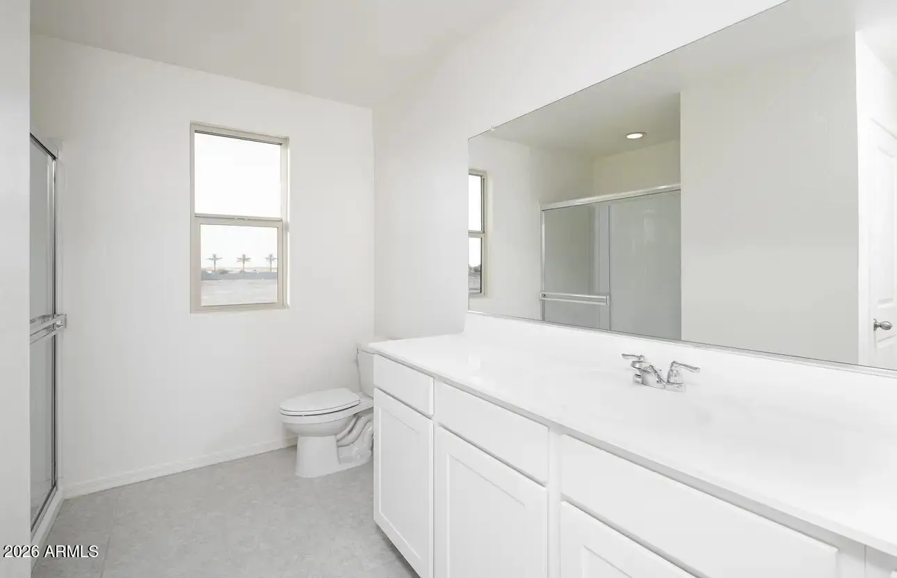 Beautiful, brand-new home located in the highly desirable West Valley community of Laveen, offering convenient access to Loop 202 and I-10. This thoughtfully designed home features 9' ceilings on the first floor, White Shaker cabinetry, Shaw 17x17 tile throughout main living areas on the first floor, and plush carpet in bedrooms and closets. The kitchen is complete with granite countertops and a full stainless steel appliance package, including a refrigerator, washer, and dryer, truly move-in ready. Energy-efficient features include Low-E dual pane windows and a WiFi-programmable thermostat for added comfort and savings. The exterior offers low-maintenance desert landscaping with irrigation, a covered patio, and a spacious, private backyard perfect for relaxing or entertaining. The