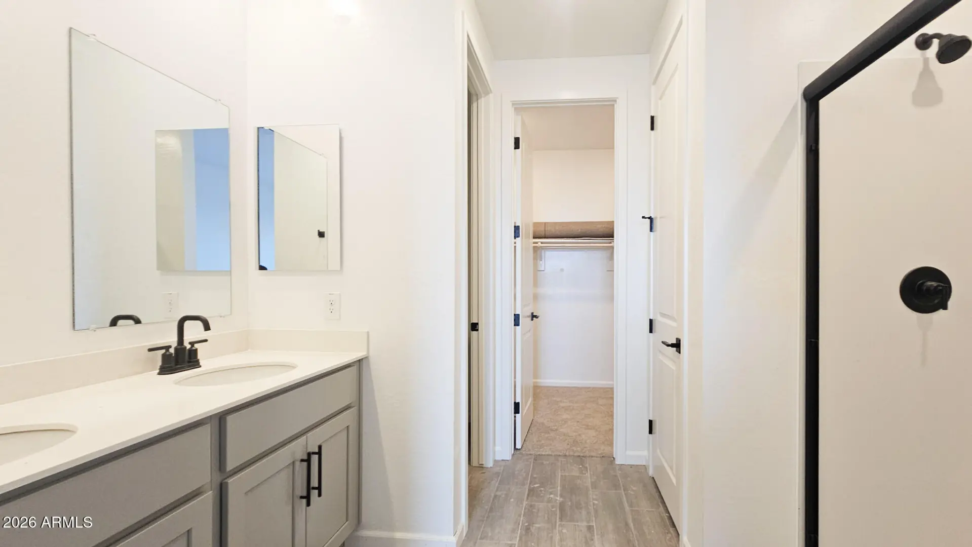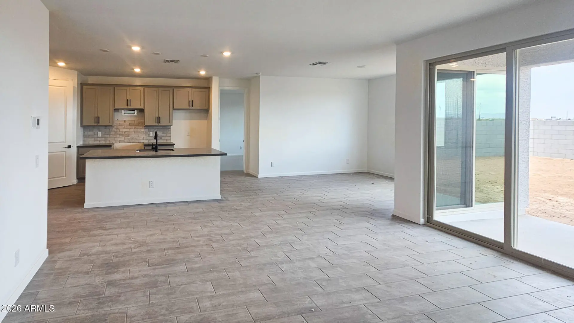 Welcome to the Marigold at Skyline! This 1,777 sq ft single-story home features 3 bedrooms, 2 bathrooms, a flexible den, and a 2-car garage with a stylish exterior. The Foundry Collection offers a clean, modern look with grey cabinetry, quartz countertops, black cabinet pulls, and wood-look tile in all main areas. A 12' sliding glass door brings in natural light and opens to the backyard for seamless indoor-outdoor living. Enjoy 8' interior doors, blinds, stainless steel appliances, refrigerator, washer, dryer, and a soft water loop. Located in Skyline with amenities including a pool, splash pad, pickleball, basketball, volleyball, walking trails, fitness center, tot lots, and a community clubhouse with kitchen. Enjoy the good life!
